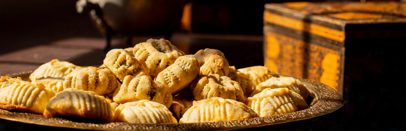 - Maamoul: Uno dei dolci più iconici della Pasqua araba, i maamoul sono biscotti ripieni di datteri, pistacchi o noci. Preparati con cura dalle famiglie, rappresentano un momento di unione e condivisione. Spesso vengono decorati con motivi tradizionali usando stampi in legno.